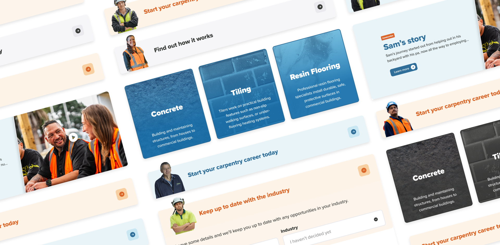 What do you think of when you hear ‘tradie’? Moving beyond traditional stereotypes, we demonstrated that trade careers are accessible to everyone. Through considered choices with our content architecture and copy, alongside diverse, friendly imagery, we helped every website visitor see themselves succeeding in the trades, showcasing women, people with disabilities, career changers including former athletes, and people from various cultural backgrounds. By profiling lesser-known trades we created pathways for people to envision their future in industries they may never have considered, ultimately broadening the talent pipeline and changing who sees trades as ‘for them’